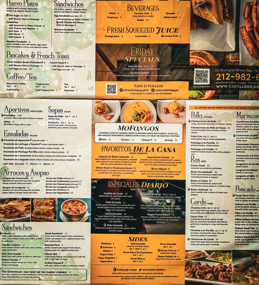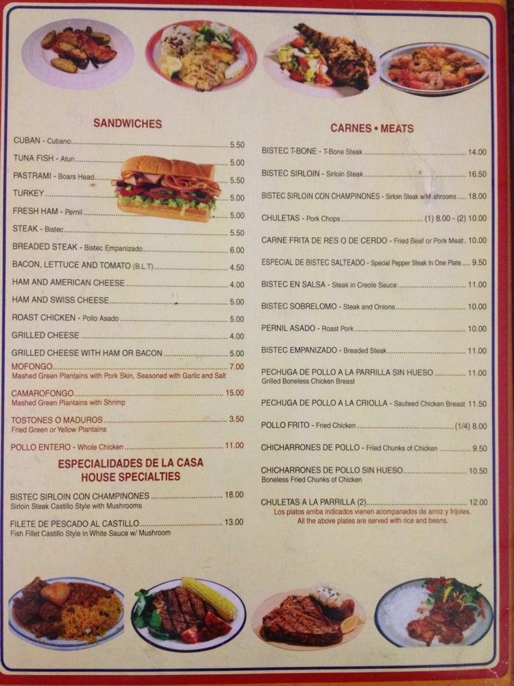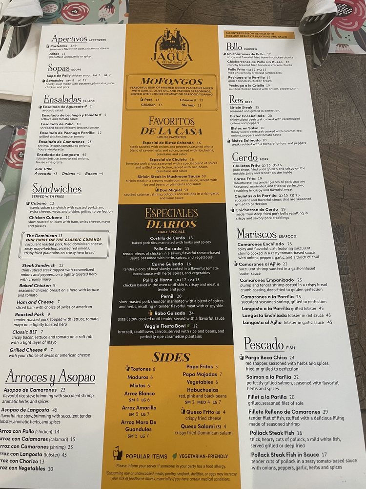 El Castillo De Jagua, a beloved Dominican-Latin American restaurant located in New York, offers a delightful array of dishes with vegan options available. Known for their seafood medley, Don Miguel, served in a flavorful garlic sauce, and the mouth-watering El Dominicano Sandwich, this restaurant delights patrons with its authentic flavors and generous portions. The menu also features classics like Beef Stew and Chicharrones, all prepared to perfection. Customers rave about the savory and sweet flavors of the dominicano sandwich and the crispy chicharrones. With friendly service and a cozy ambiance, El Castillo De Jagua is a must-visit spot for those craving authentic Latin American cuisine. Whether you're a longtime customer or a first-time visitor, this restaurant promises a memorable dining experience.